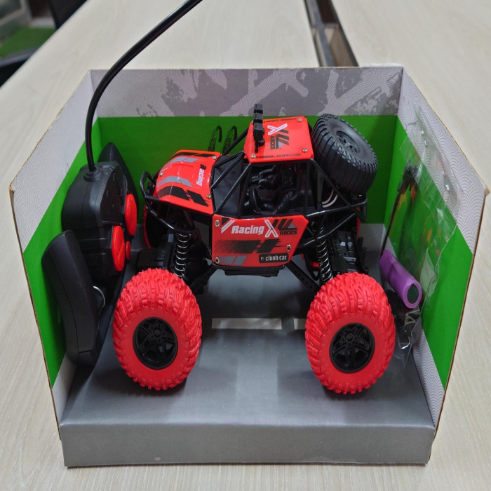 রিমোট কন্ট্রোল অফ রোড গাড়ি! রিচার্জেবল ব্যাটারি সহ উচ্চ গতির রিমোট নিয়ন্ত্রিত যান। যানবাহনের আকার: 19 x 13 x 12 সেমি 1:18 স্কেল। 3.7V লিথিয়াম-আয়ন রিচার্জেবল ব্যাটারি। নিয়ন্ত্রণের জন্য দুটি 1.5V AA ব্যাটারির প্রয়োজন।
